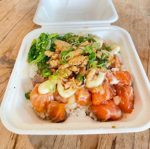 Ahi(Tuna) is locally caught and only used fresh ones. Our poke is unique and secret is that we use special sauce on top of the rice and that makes flavor better!!